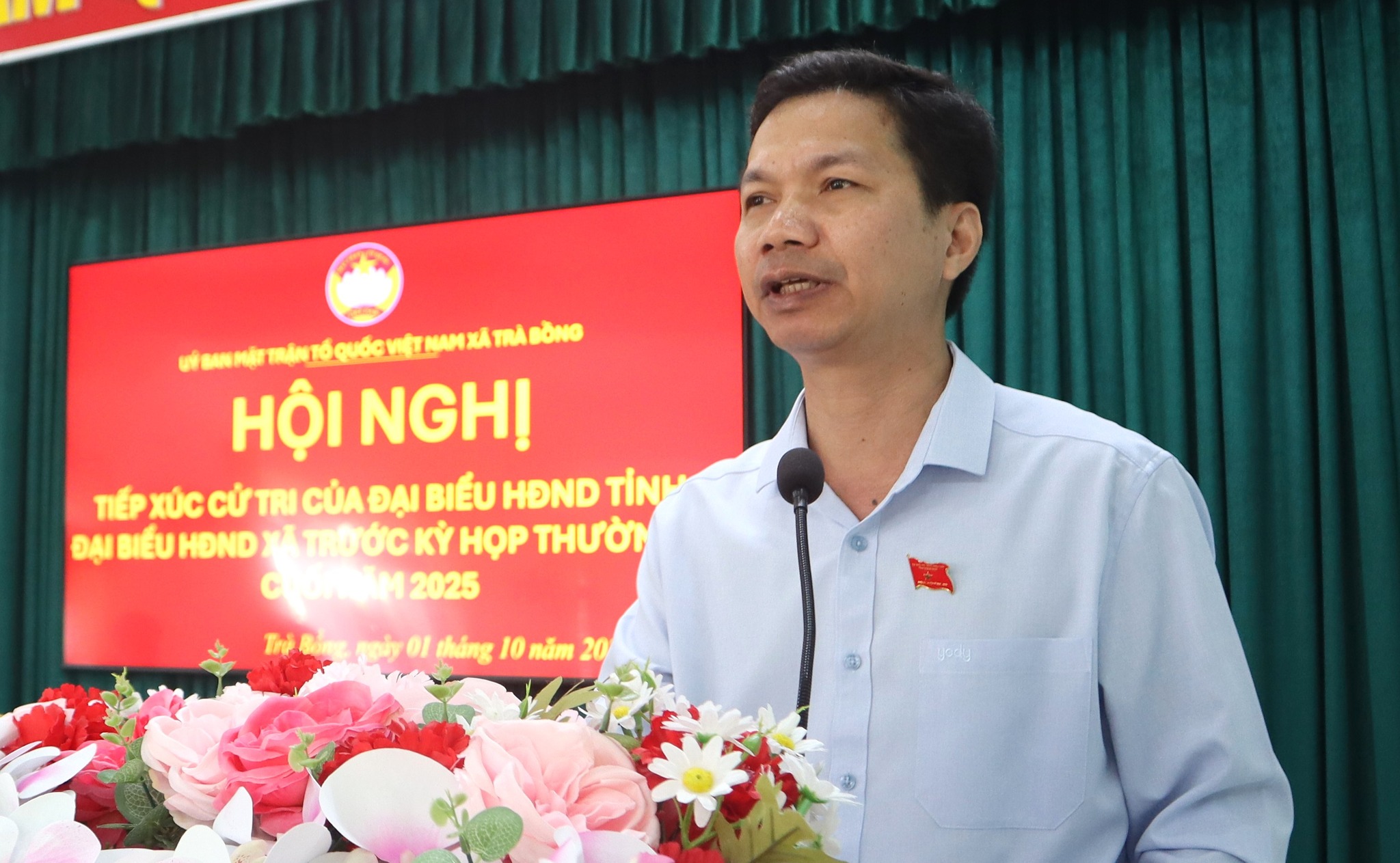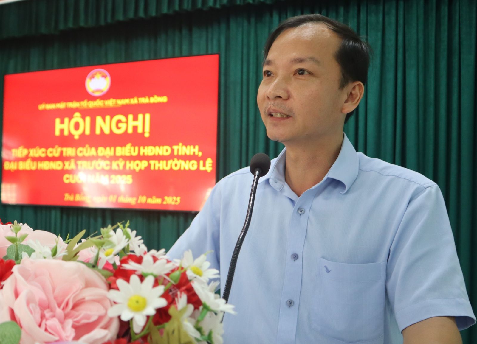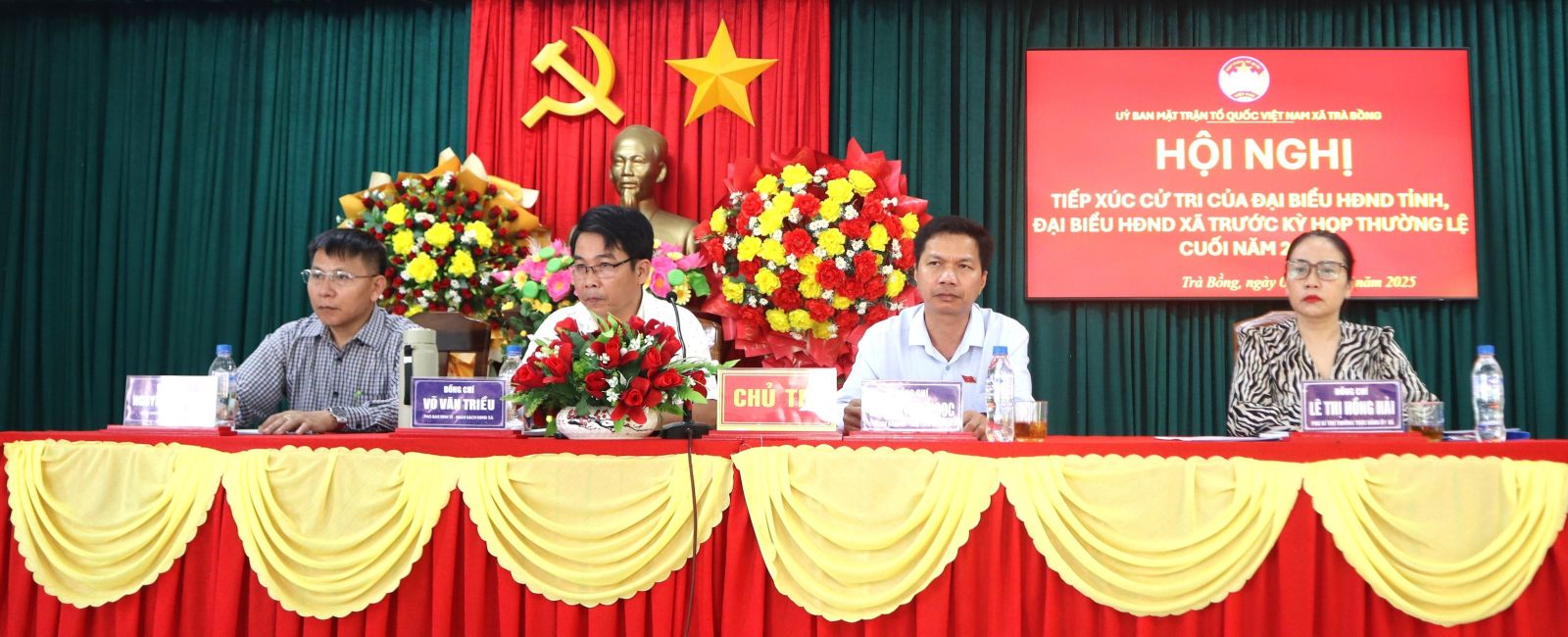 Sáng ngày 01/10/2025, tại nhà văn hóa TT Trà Xuân (cũ), tổ đại biểu HĐND tỉnh có ông Hoàng Anh Ngọc, Bí thư Đảng ủy, Chủ tịch HĐND xã Trà Bồng và tổ đại biểu HĐND xã Trà Bồng gồm bà Lê Thị Hồng Hải, PBT Thường trực Đảng ủy xã; ông Nguyễn Duy Tuấn, Phó Chủ nhiệm Ủy ban Kiểm tra Đảng ủy xã; ông Võ Văn Triều, Phó Trưởng Ban Kinh tế - Ngân sách HĐND xã đã có buổi tiếp xúc cử tri các thôn trên địa bàn TT Trà Xuân (cũ).