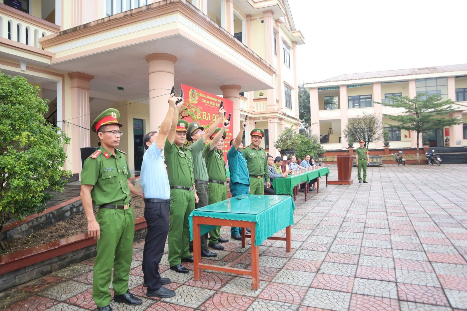 Tại buổi lễ, các đại biểu đã nghe đại diện lãnh đạo Công an xã triển khai tóm tắt nội dung các văn bản, chỉ đạo của Giám đốc Công an Tỉnh về mở đợt cao điểm và kế hoạch thực hiện đợt cao điểm của Công an xã Trà Bồng.