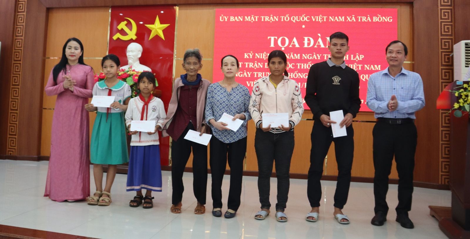 Tại buổi tọa đàm, Mặt trận xã Trà Bồng cũng đã trao tặng 6 suất quà cho các hộ nghèo đặc biệt khó khăn, học sinh nghèo vượt khó học giỏi trên địa bàn xã./.