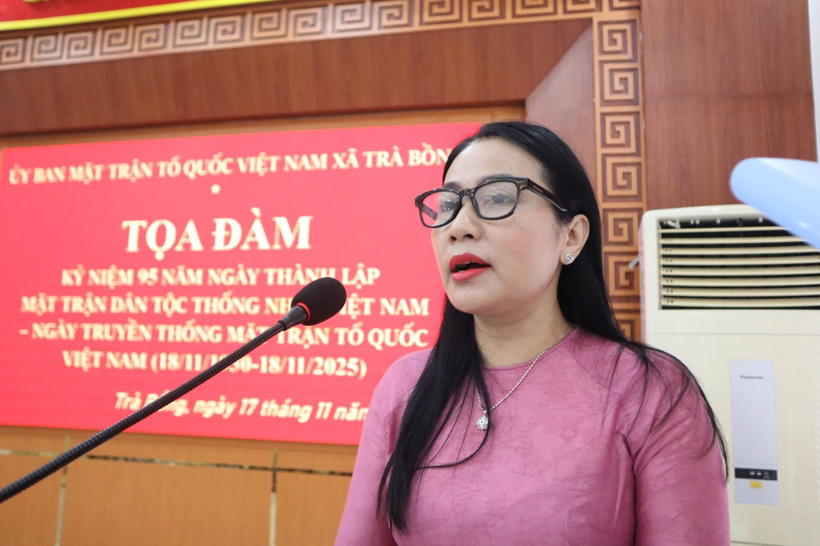 XÃ TRÀ BỒNG TỔ CHỨC TỌA ĐÀM KỶ NIỆM 95 NĂM NGÀY THÀNH LẬPMẶT TRẬN DÂN TỘC THỐNG NHẤT VIỆT NAM (18/11/1930 – 18/11/2025)