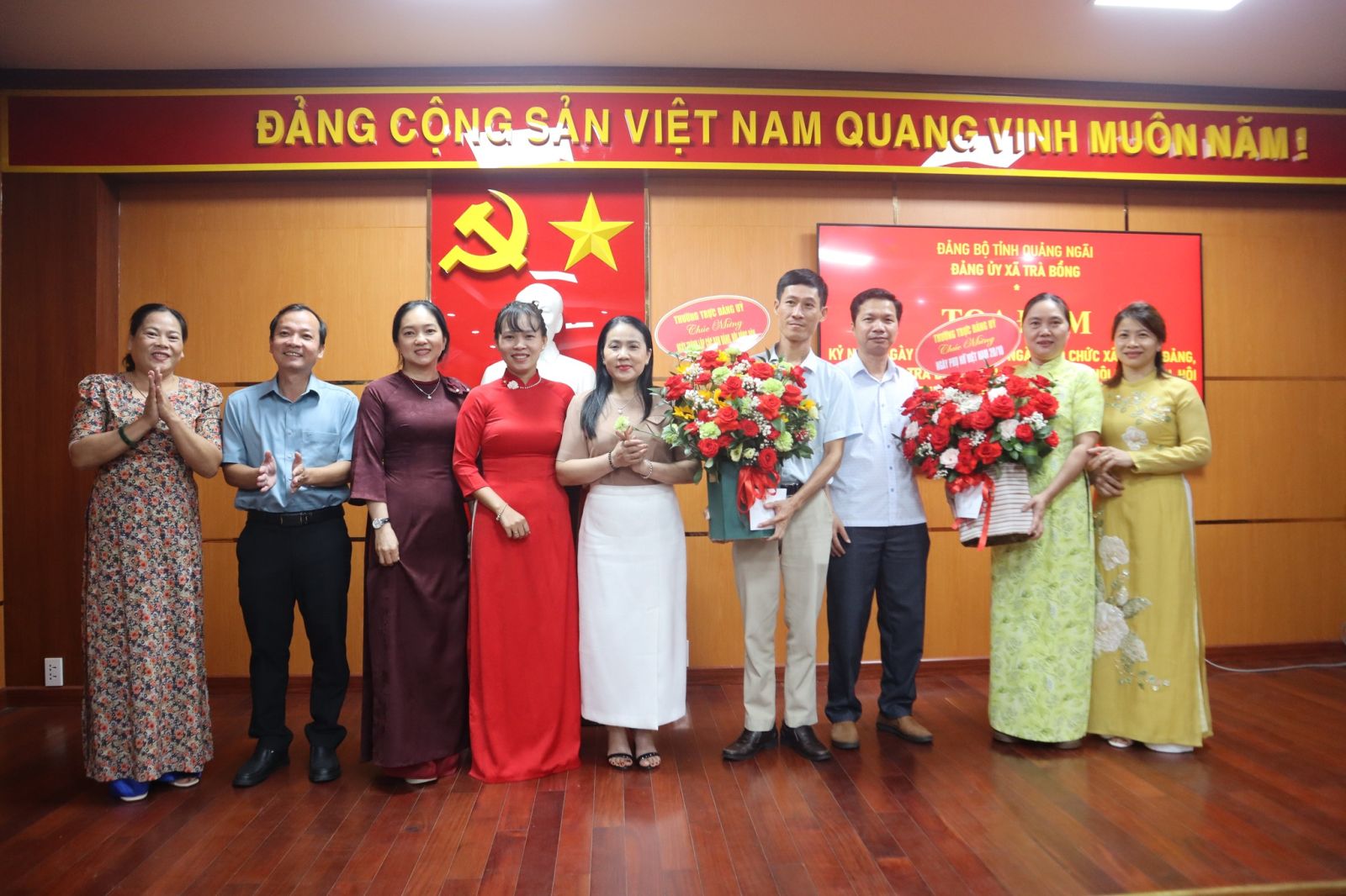 Nhằm ôn lại truyền thống vẻ vang và tôn vinh những đóng góp quan trọng của các tổ chức Đảng và đoàn thể trong suốt chặng đường 95 năm qua, chiều 13/10/2025, Ban Thường vụ Đảng ủy xã Trà Bồng tổ chức buổi tọa đàm, gặp mặt nhân kỷ niệm ngày truyền thống các Ban xây dựng Đảng, Văn phòng cấp ủy, 77 năm ngày truyền thống ngành Kiểm tra của Đảng, 95 năm ngày thành lập Hội Nông dân Việt Nam (14/10/1930) và Hội Liên hiệp Phụ nữ Việt Nam (20/10/1930).